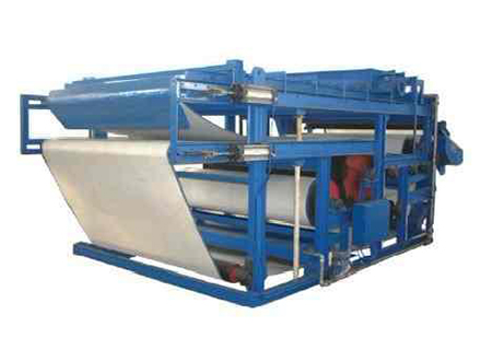 帶式壓濾機(jī)經(jīng)過濃縮的污泥與一定濃度的絮凝劑在靜、動(dòng)態(tài)混合器中充分混合以后,污泥中的微小固體顆粒聚凝成體積較大的絮狀團(tuán)塊,同時(shí)分離出自由水,絮凝后的污泥被輸送到濃縮重力脫水的濾帶上,在重力的作用下自由水被分離,形成不流動(dòng)狀態(tài)的污泥,然后夾持在上下兩條網(wǎng)帶之間,經(jīng)過楔形預(yù)壓區(qū)、低壓區(qū)和高壓區(qū)由小到大的擠壓力、剪切力作用下,逐步擠壓污泥,以達(dá)到程度的泥、水分離,形成濾餅排出。